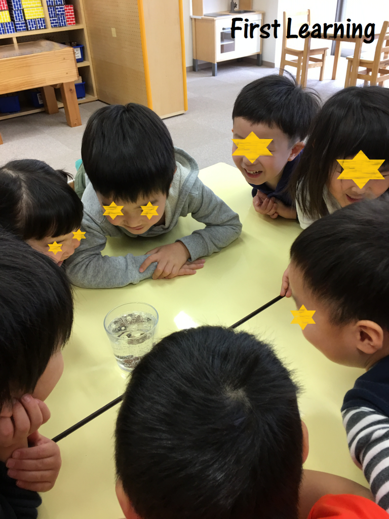 キンダークラスでは、ゲームの一環として、理科の実験を行っています。